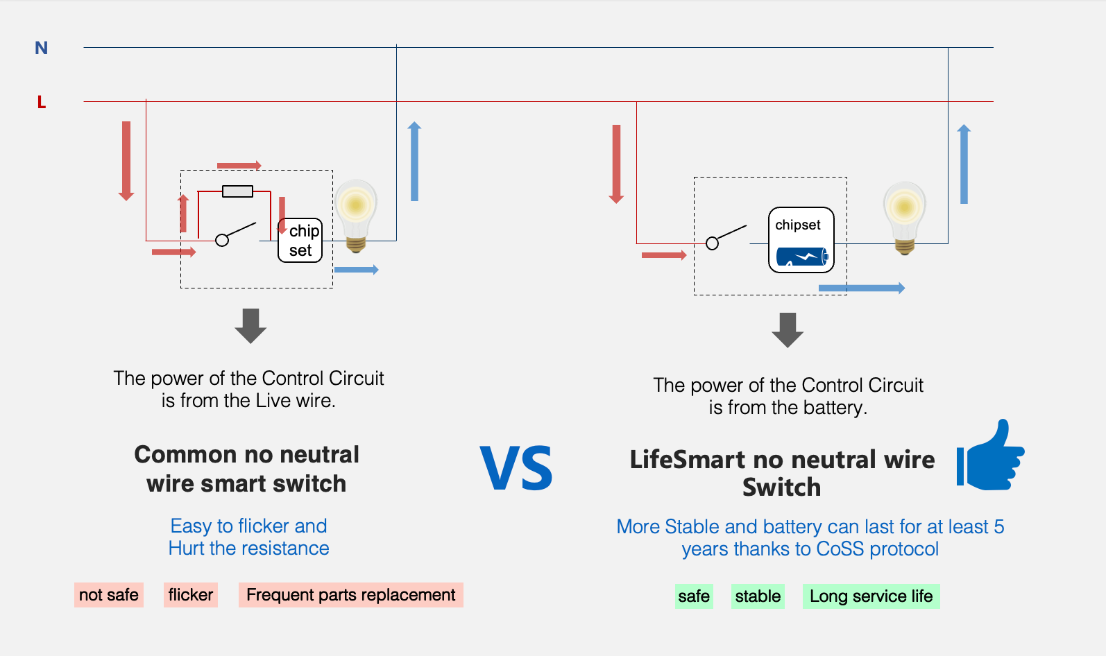 Công tắc thông minh không dây Nguội (N) LS185 LifeSmart được sử dụng trong trường hợp nào ? Đối với những nhà đã xây dựng và đã đưa vào sử dụng không có dây Nguối N việc kéo thêm dây nguội về công tắc là đều rất khó vì trần, tường đã hoàn thiện, chỉ cần thay thế công tắc điện hiện có bằng Công tắc thông minh không dây nguội là có thể biến ngôi nhà truyền thống thành thông minh, sử dụng điều khiển trực tiếp hoặc từ xa qua điện thoại, kết hợp với các thiết bị thông minh khác để tạo các ngữ cảnh thông minh.